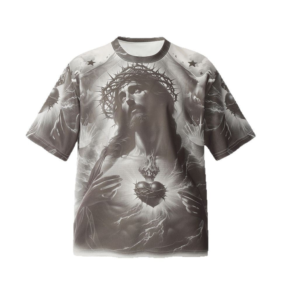 ☠𝔾𝕣𝕠𝕦𝕟𝕕ℤ𝕖𝕣𝕠®♛GZ嘻哈♛2025年SS-春夏新款彩繪耶穌網眼短袖圓領T-Shirt上衣