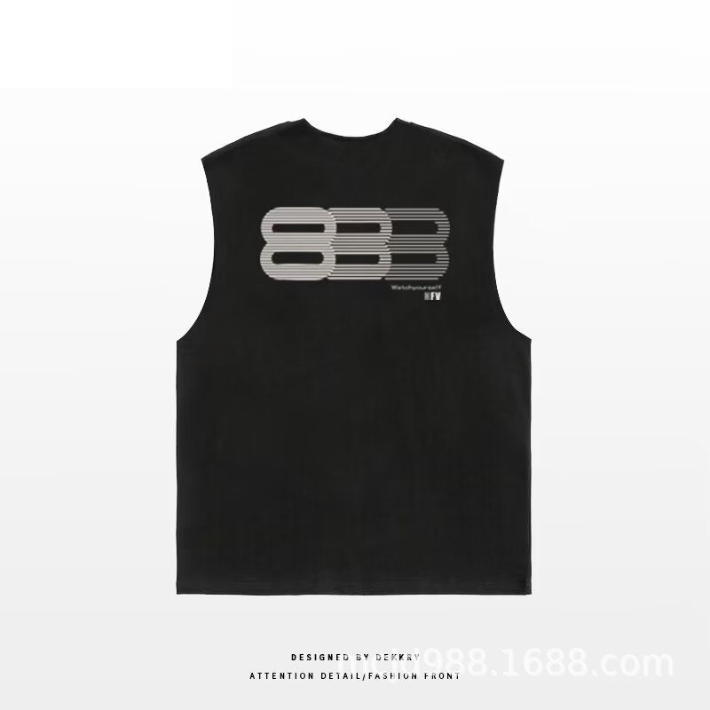♠𝔾𝕣𝕠𝕦𝕟𝕕ℤ𝕖𝕣𝕠♠美式風格夏日新款棉質888大尺寸無袖運動背心