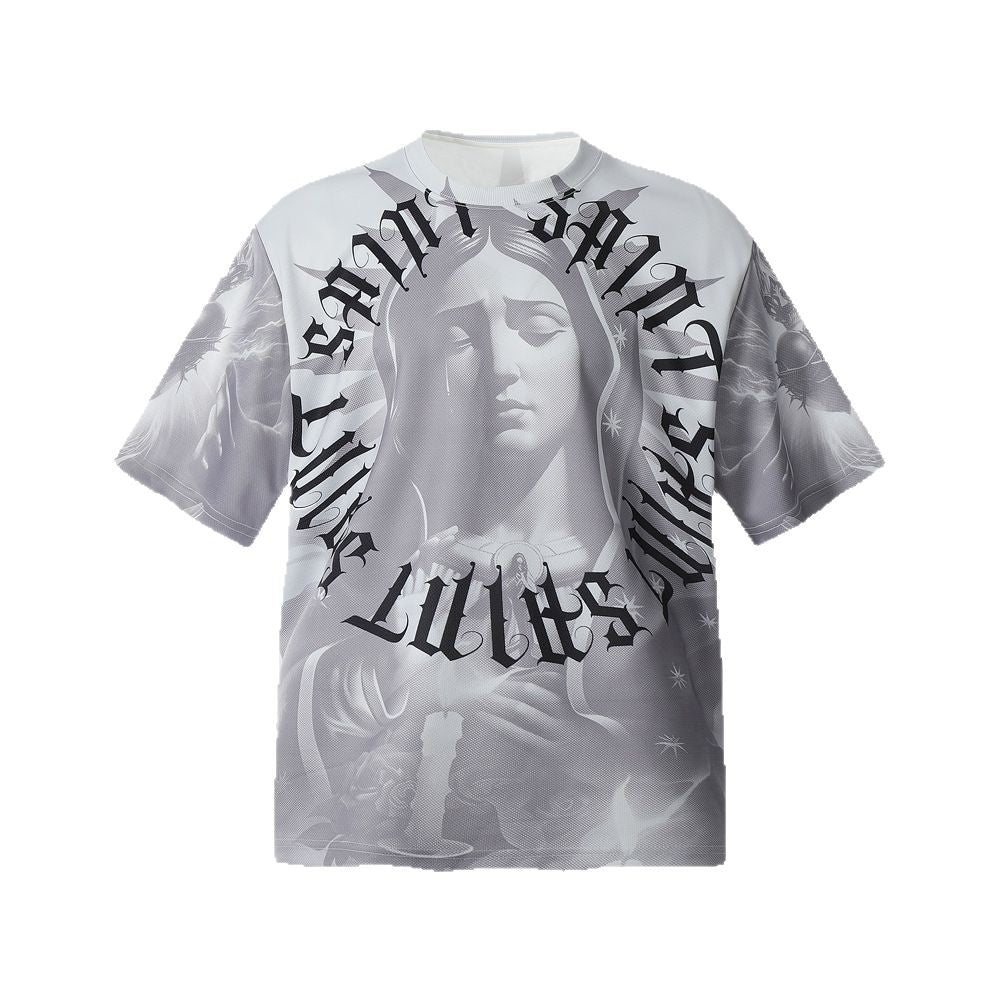 ☠𝔾𝕣𝕠𝕦𝕟𝕕ℤ𝕖𝕣𝕠®♛GZ嘻哈♛2025年SS-春夏新款慈愛聖母網眼短袖圓領T-Shirt上衣