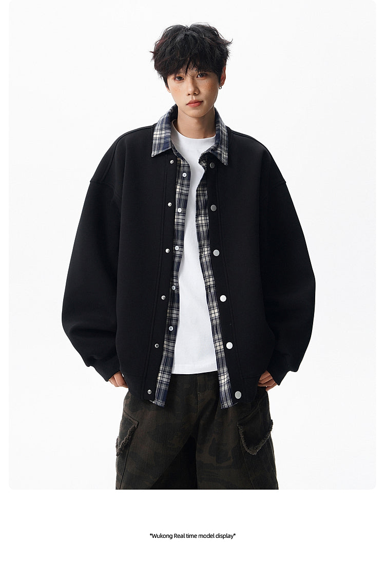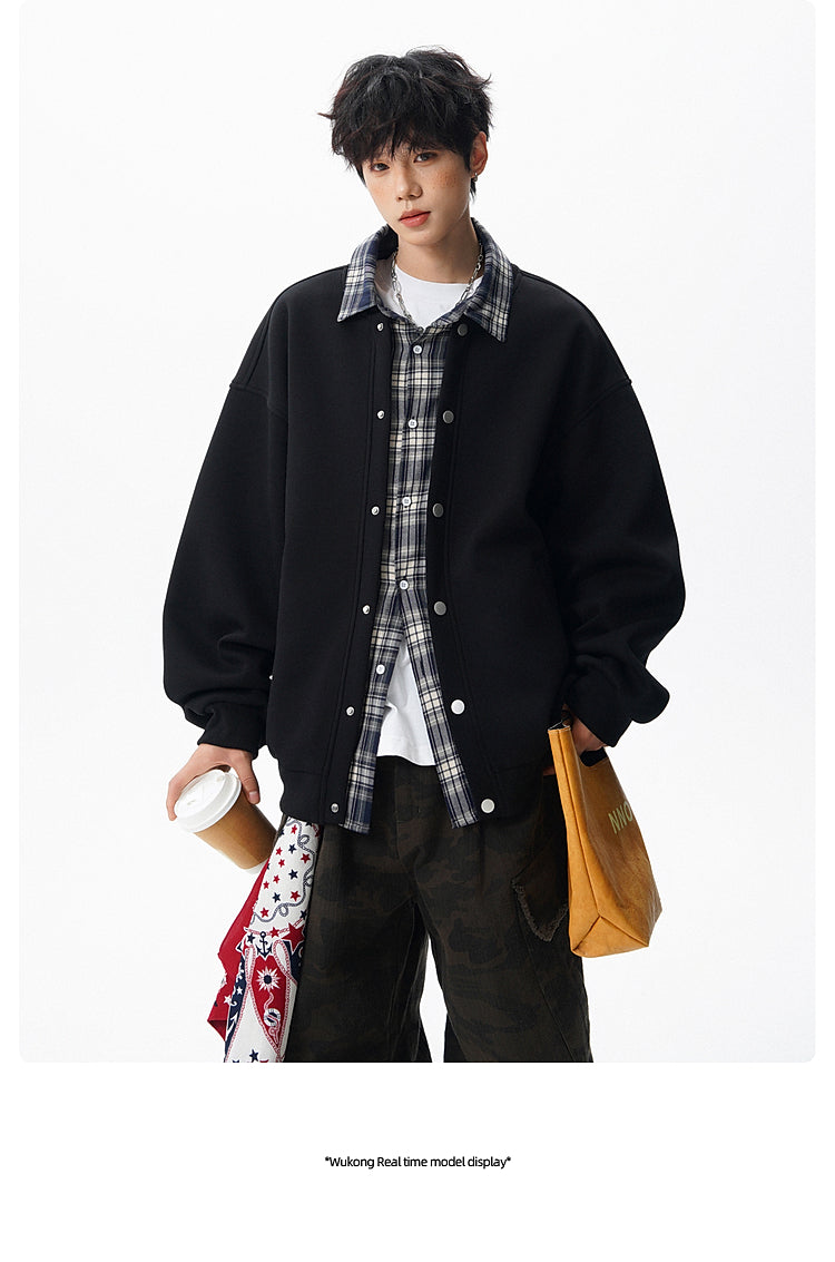 𝔾𝕣𝕠𝕦𝕟𝕕ℤ𝕖𝕣𝕠®2026年秋冬款復古假兩件式立領百搭棒球夾克外套
