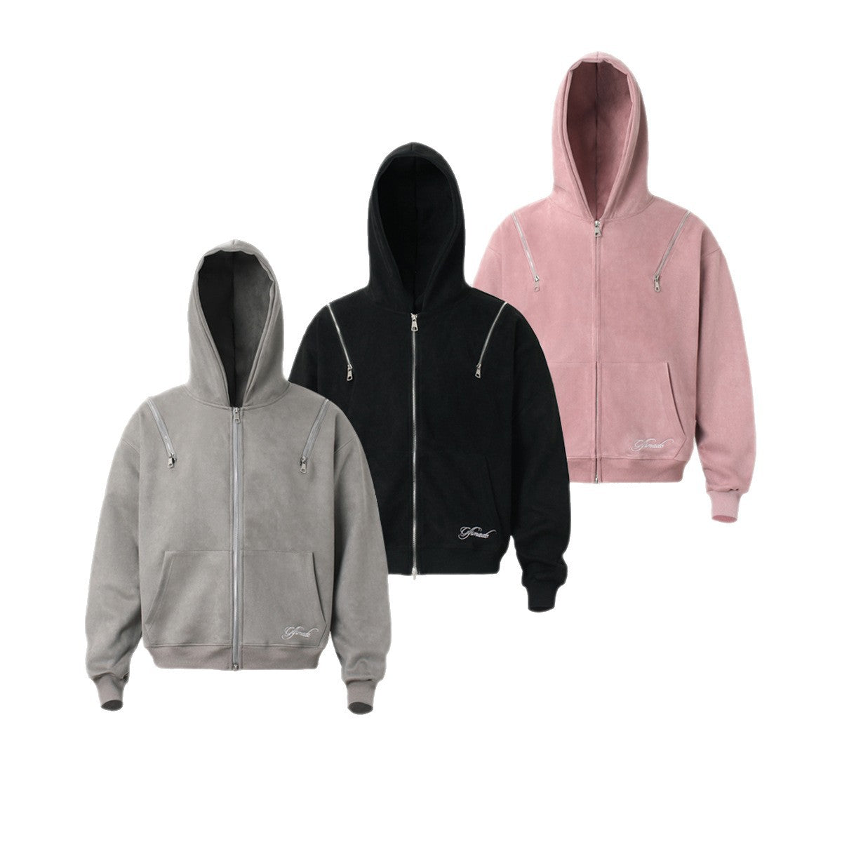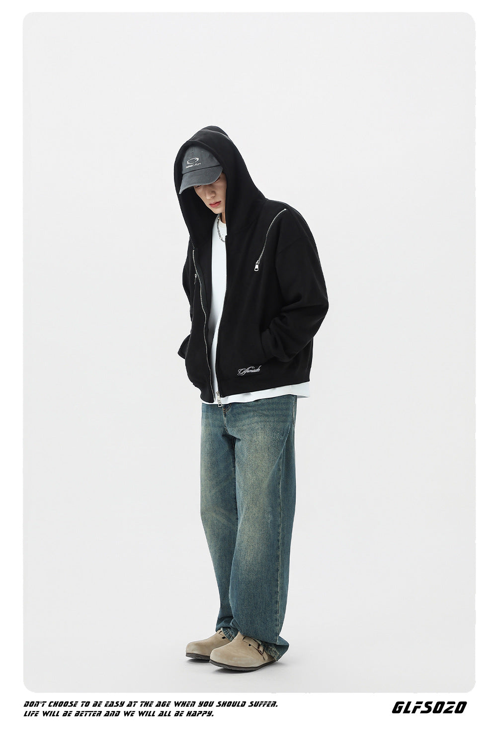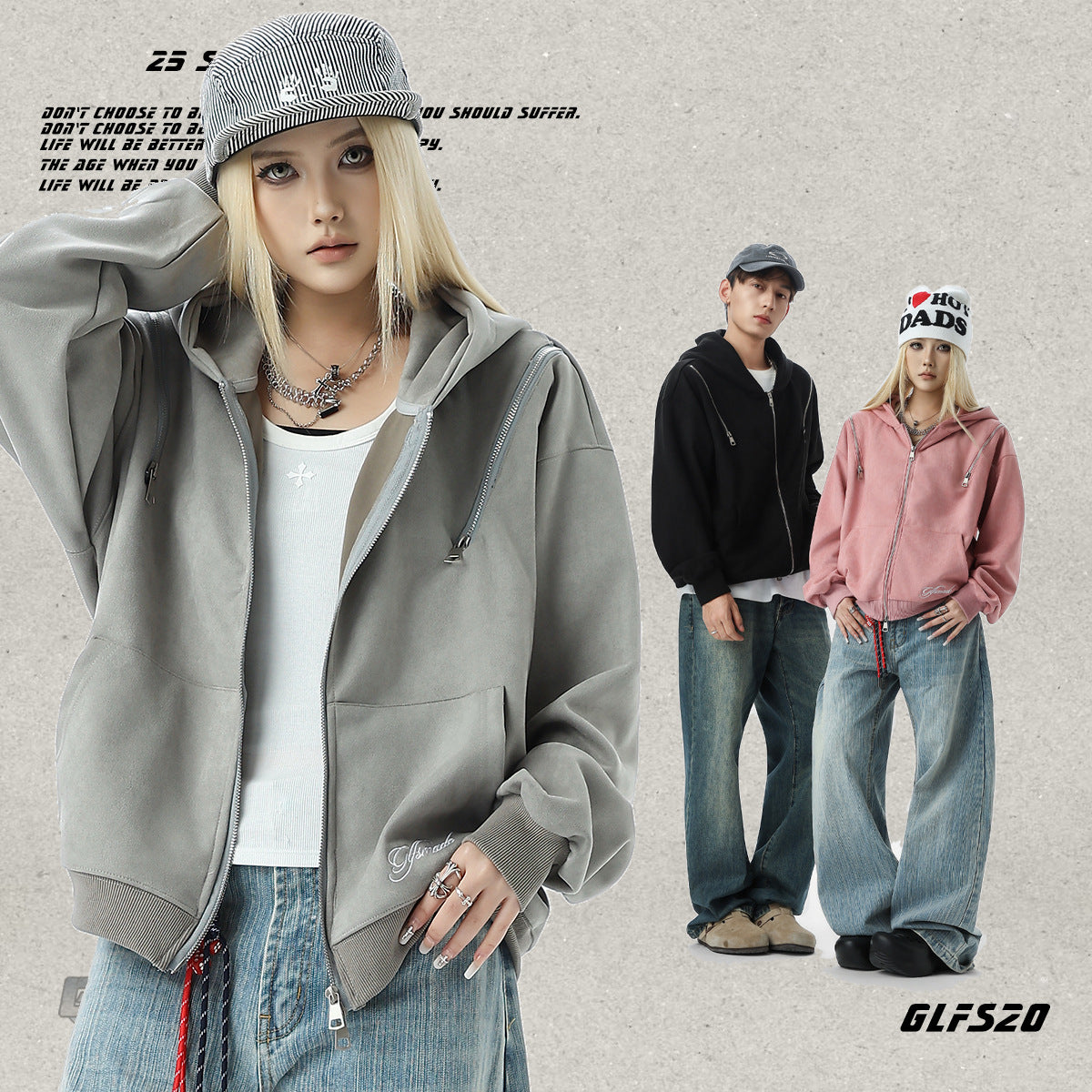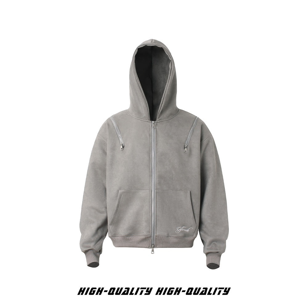 𝔾𝕣𝕠𝕦𝕟𝕕ℤ𝕖𝕣𝕠®2026年秋冬款簡約嘻哈電繡字母連帽長袖外套夾克