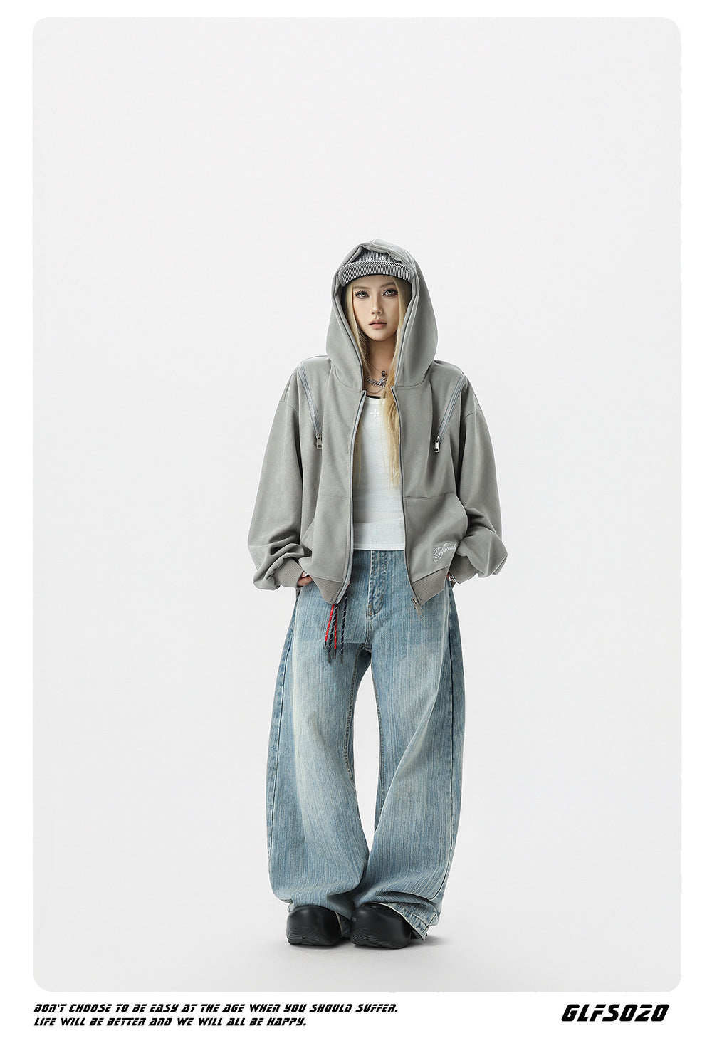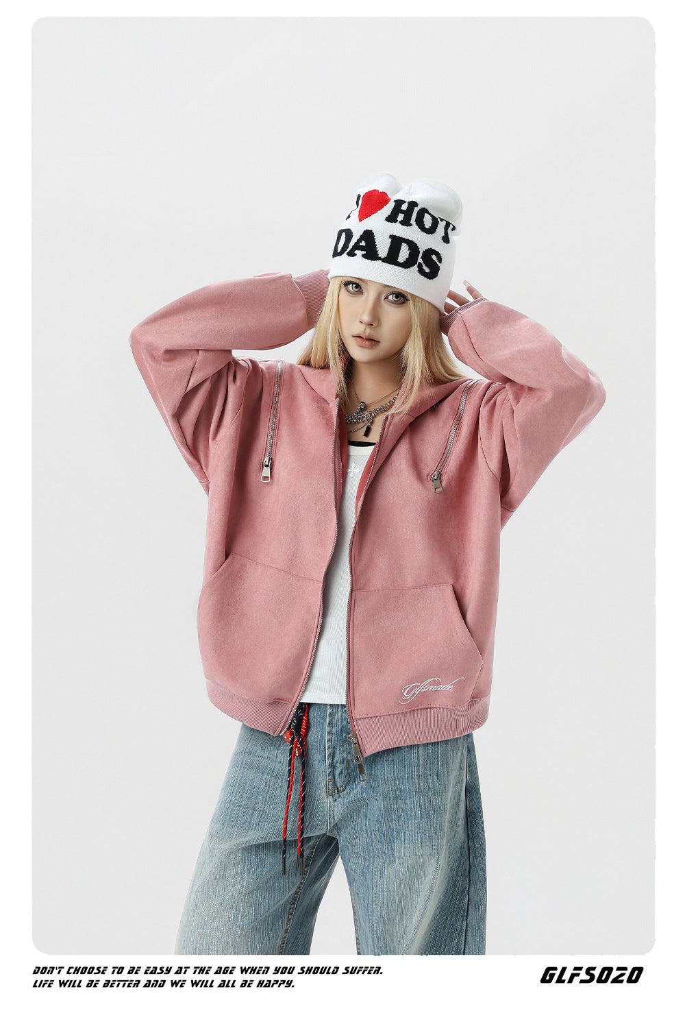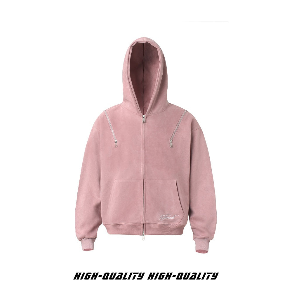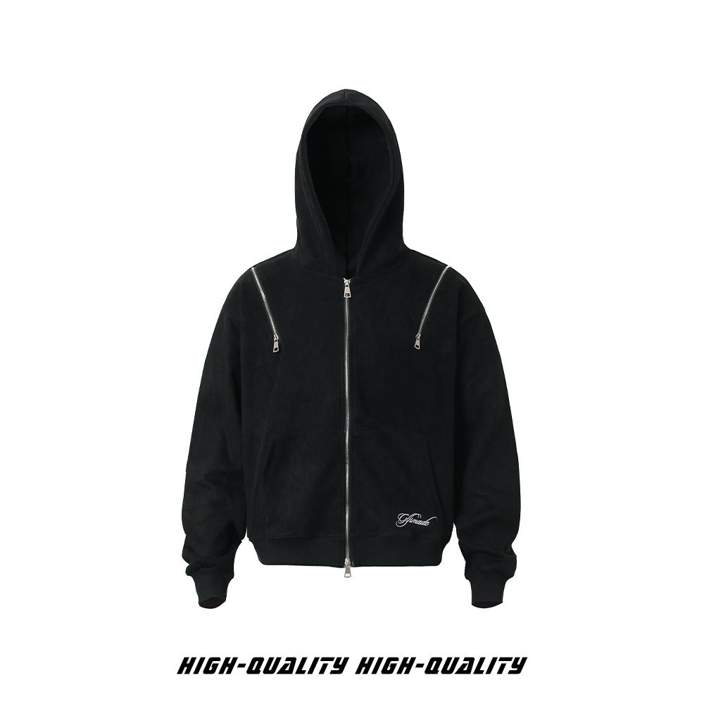 𝔾𝕣𝕠𝕦𝕟𝕕ℤ𝕖𝕣𝕠®2026年秋冬款簡約嘻哈電繡字母連帽長袖外套夾克
