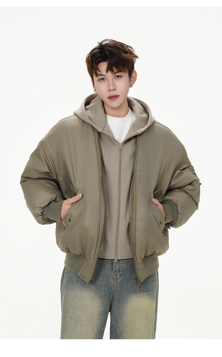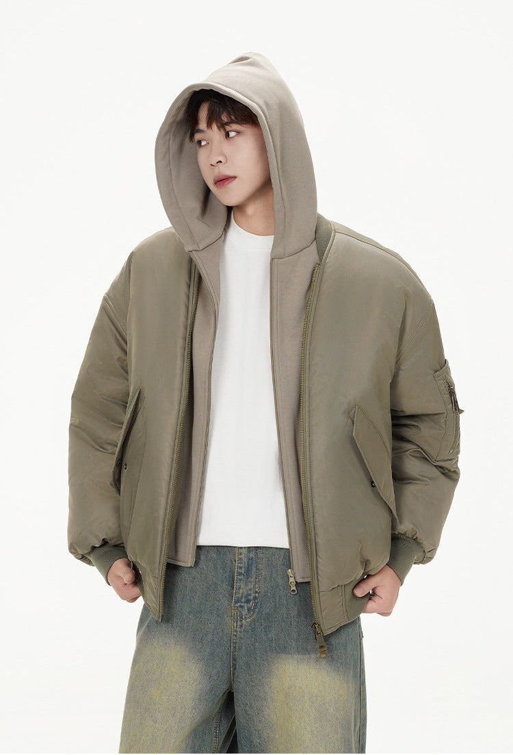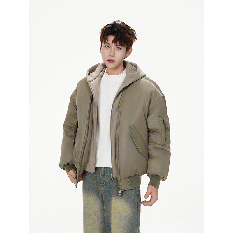𝔾𝕣𝕠𝕦𝕟𝕕ℤ𝕖𝕣𝕠®2026年秋冬款經典復古假兩件式寬鬆連帽防風保暖飛行夾克外套(限量)
