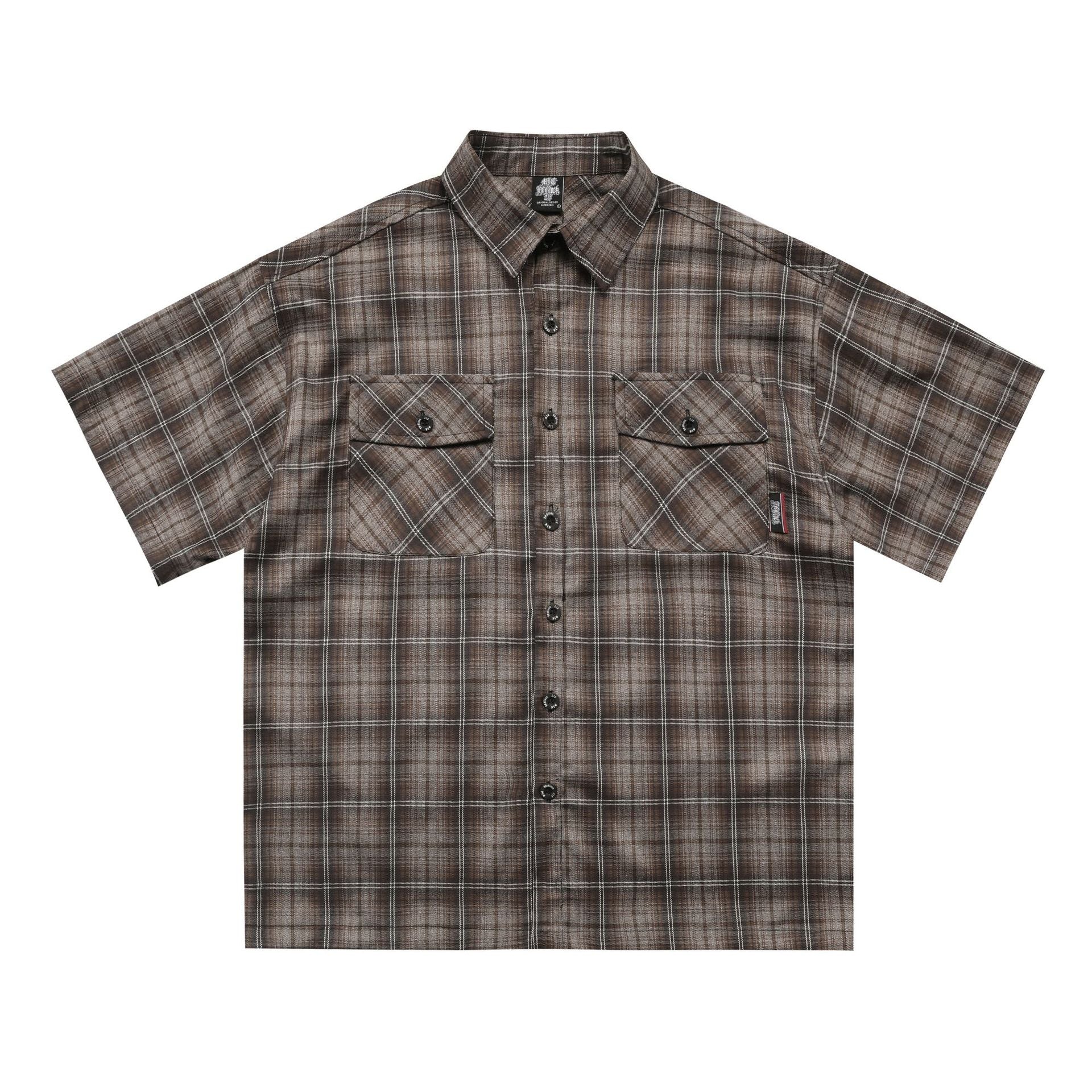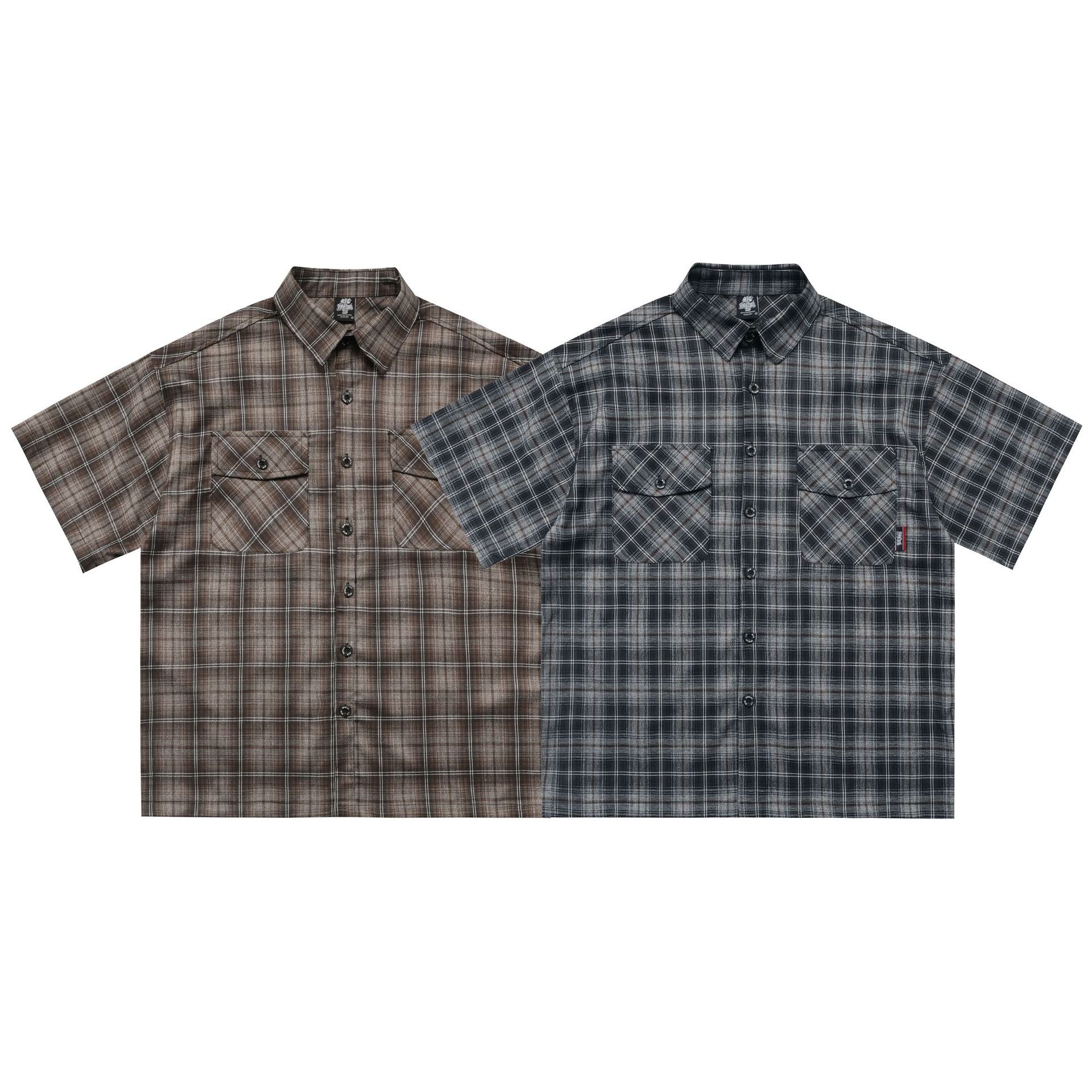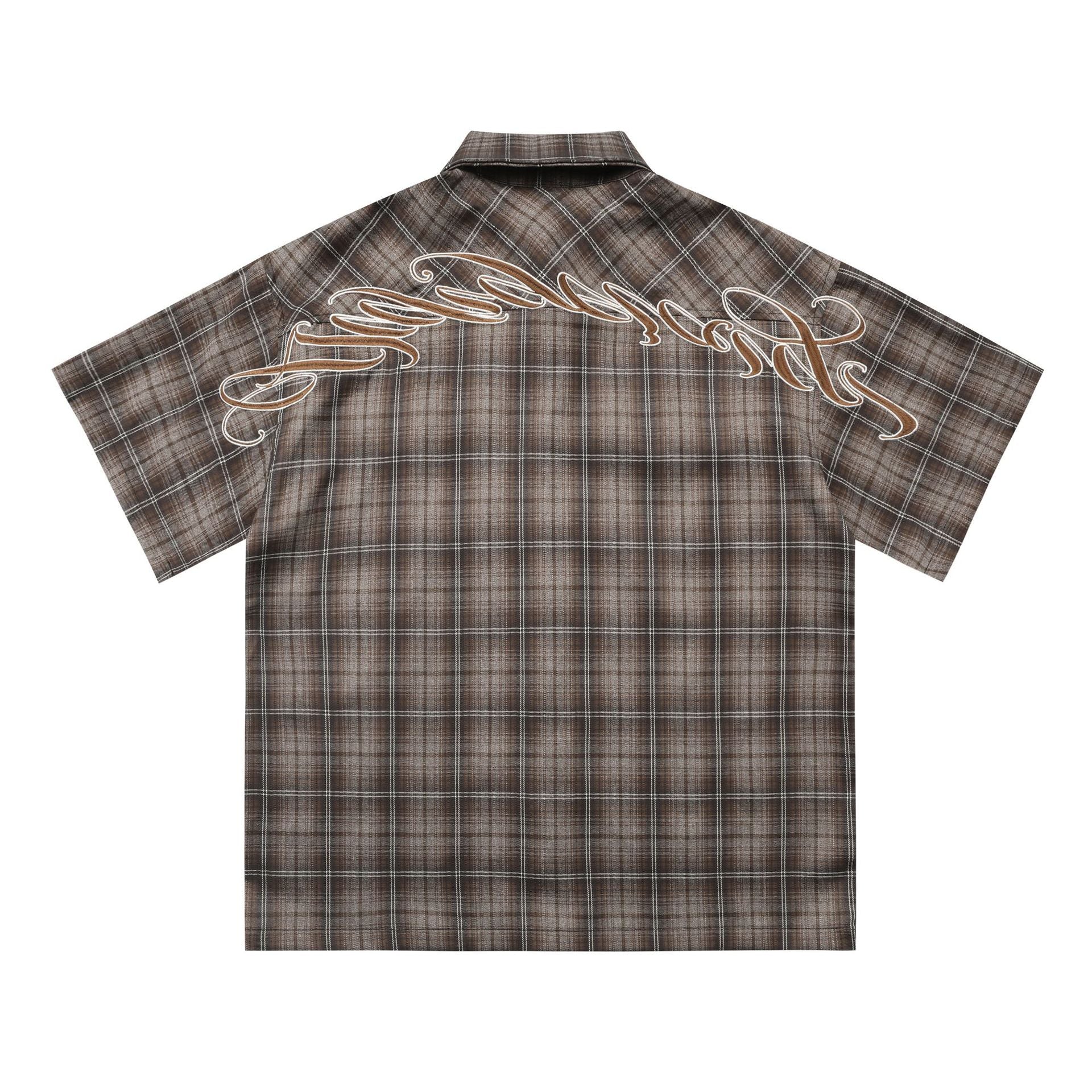 𝔾𝕣𝕠𝕦𝕟𝕕ℤ𝕖𝕣𝕠🎭♠墨西哥♠匪幫⚂2025年⚅美式嘻哈寬鬆刺繡翻花格紋短袖襯衫