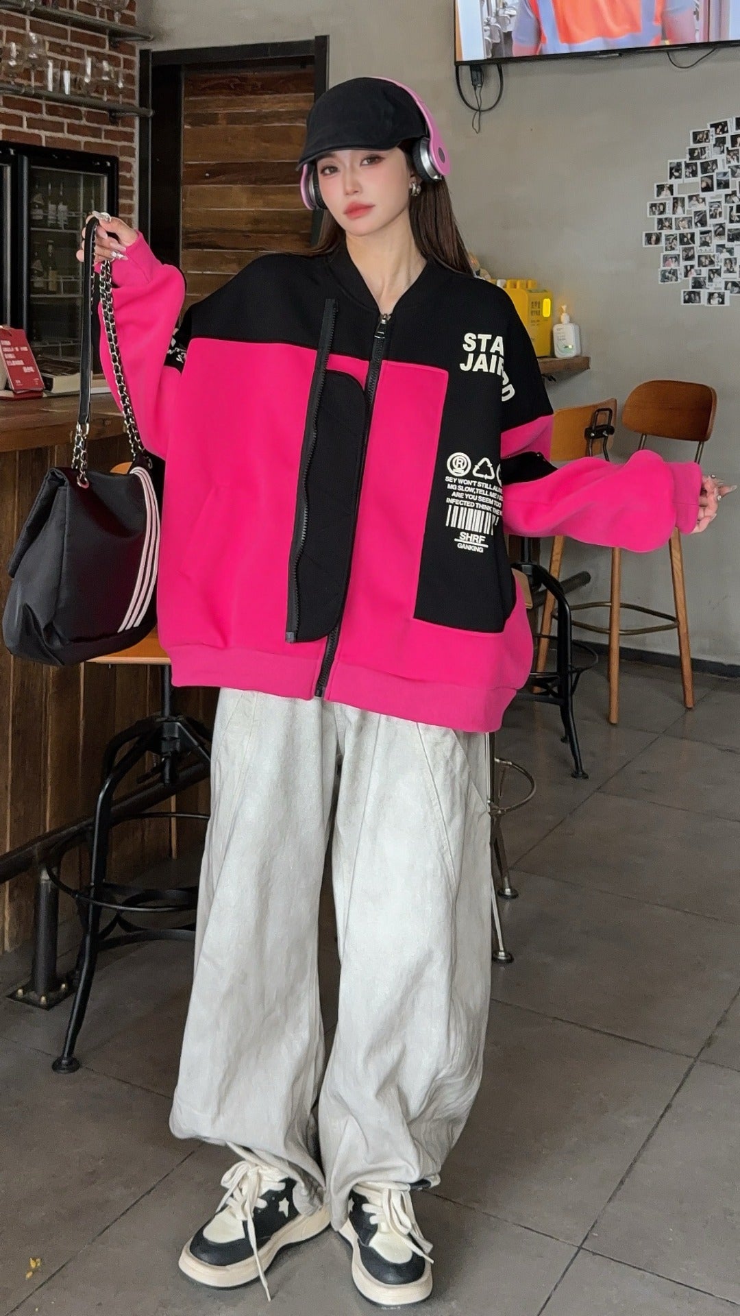 🄶🅁🄾🅄🄽🄳♾🅉🄴🅁🄾25-26SS♾無性別穿搭OverSize美式新款復古賽博糖果風口袋拉鍊外套(現貨)