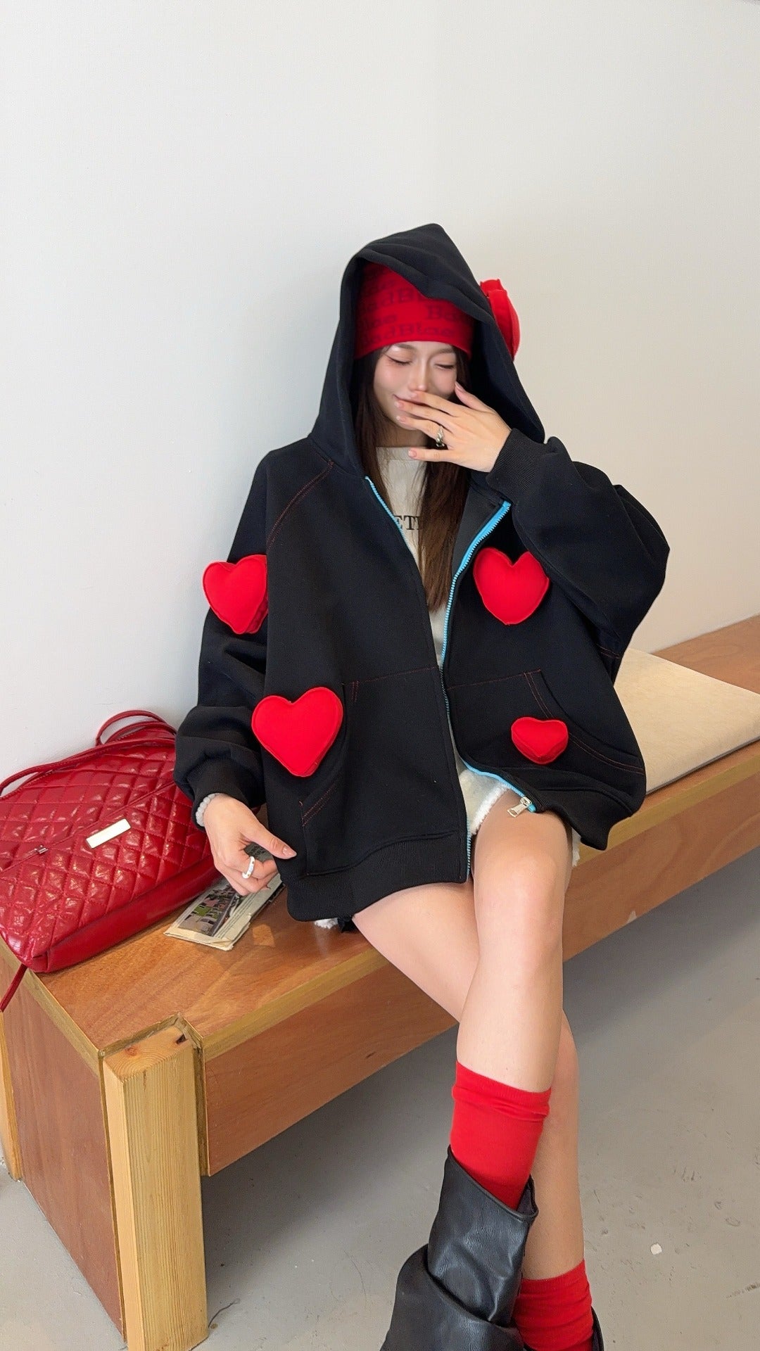 🄶🅁🄾🅄🄽🄳♾🅉🄴🅁🄾25-26SS♾無性別穿搭OverSize美式新款立體愛心連帽長袖夾克外套(現貨優惠)