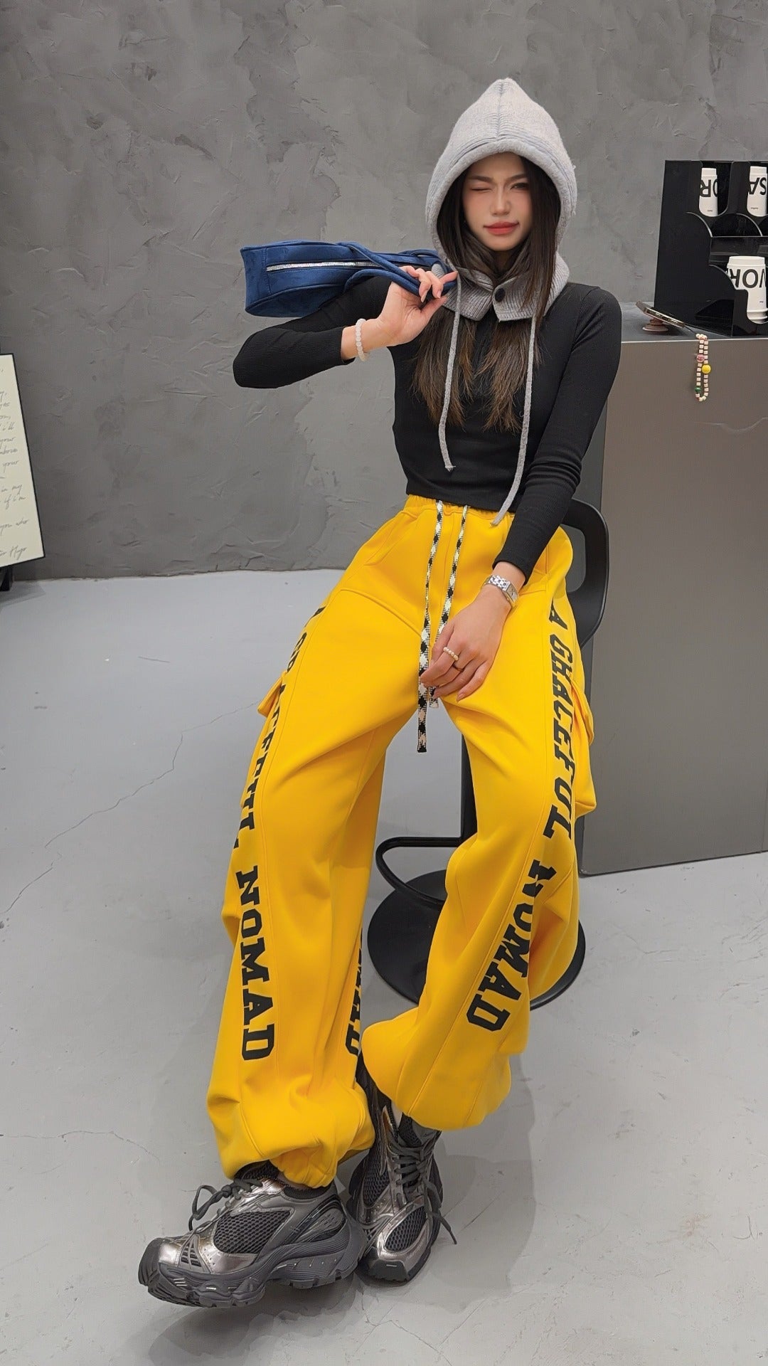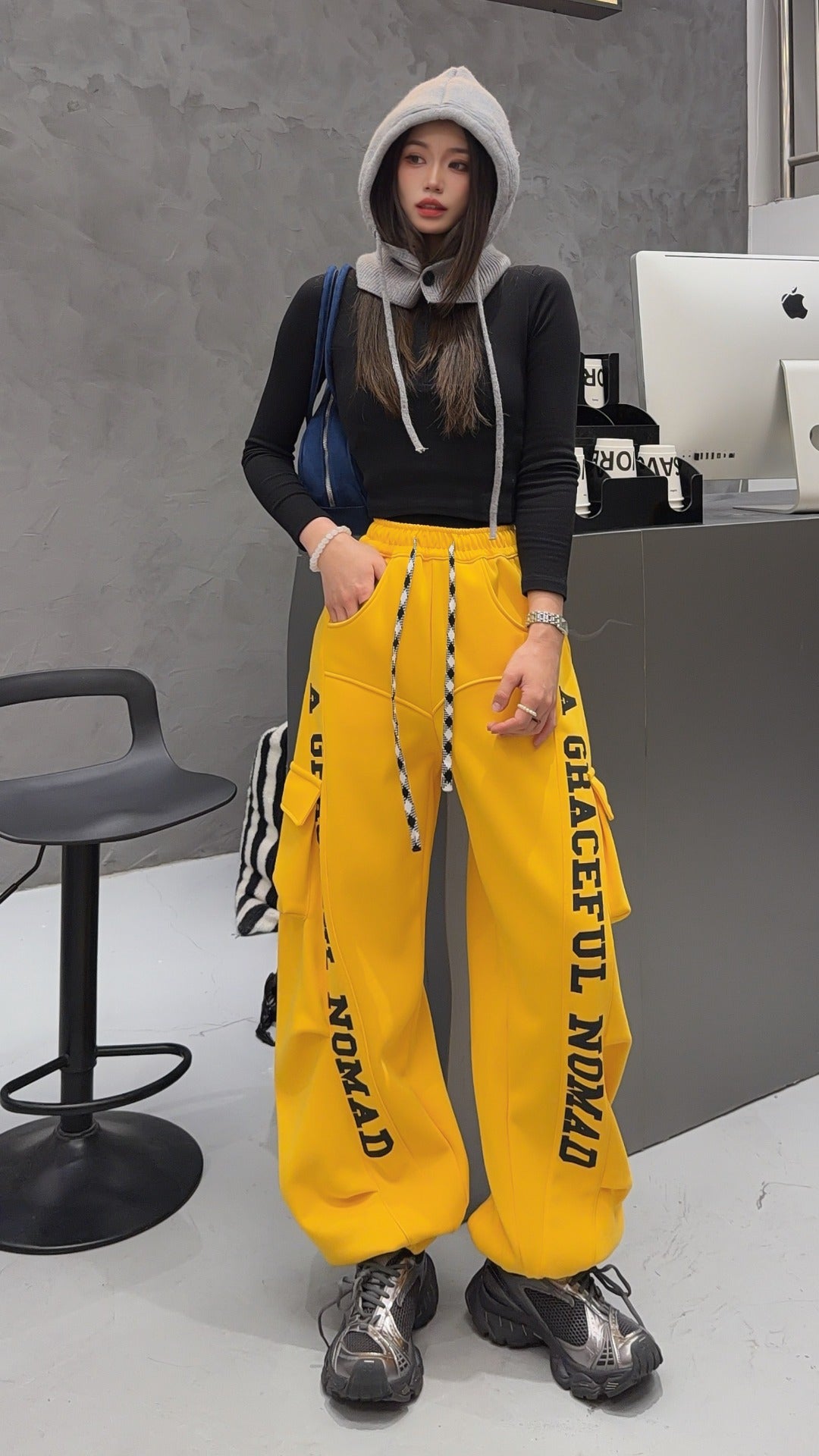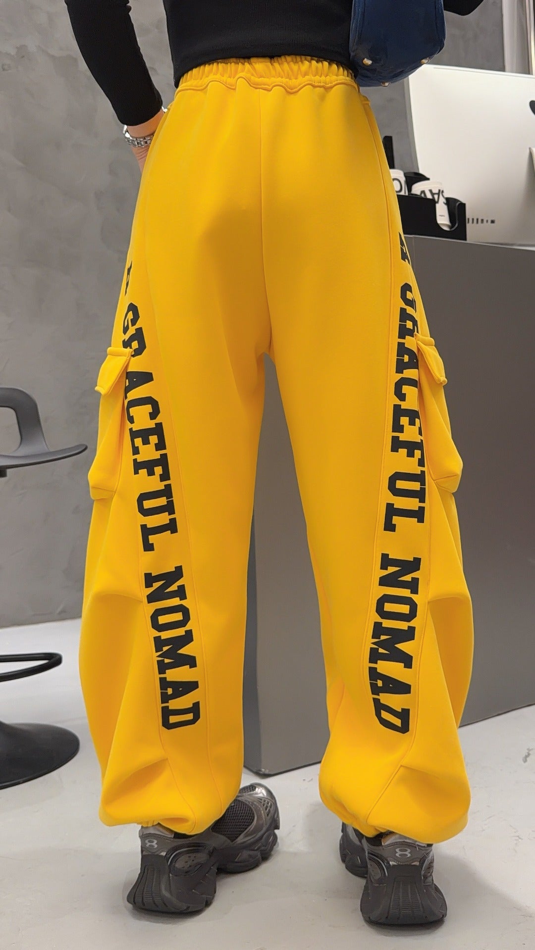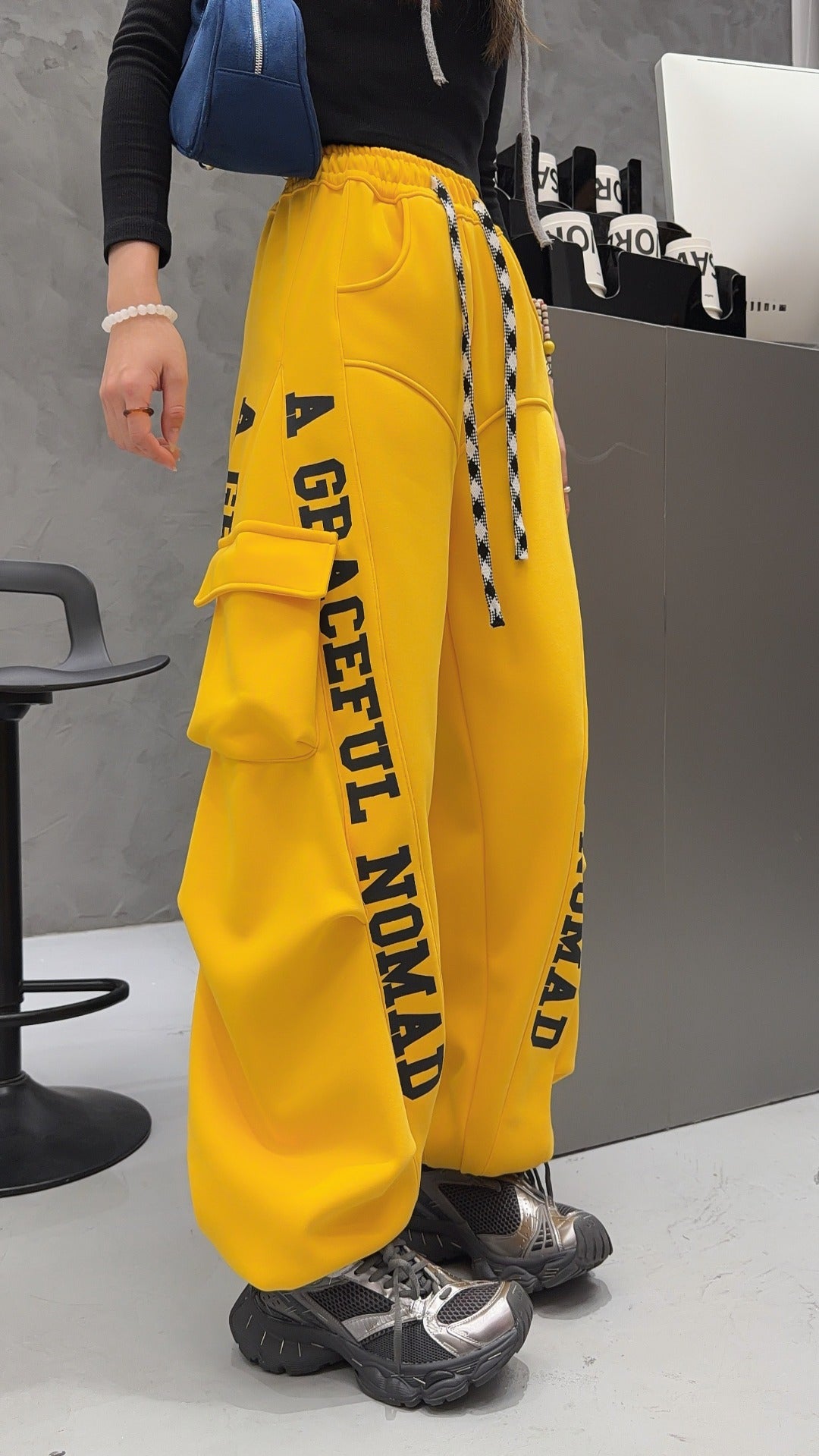 🄶🅁🄾🅄🄽🄳♾🅉🄴🅁🄾25-26SS♾無性別穿搭OverSize美式新款口袋字母彎刀束口長褲