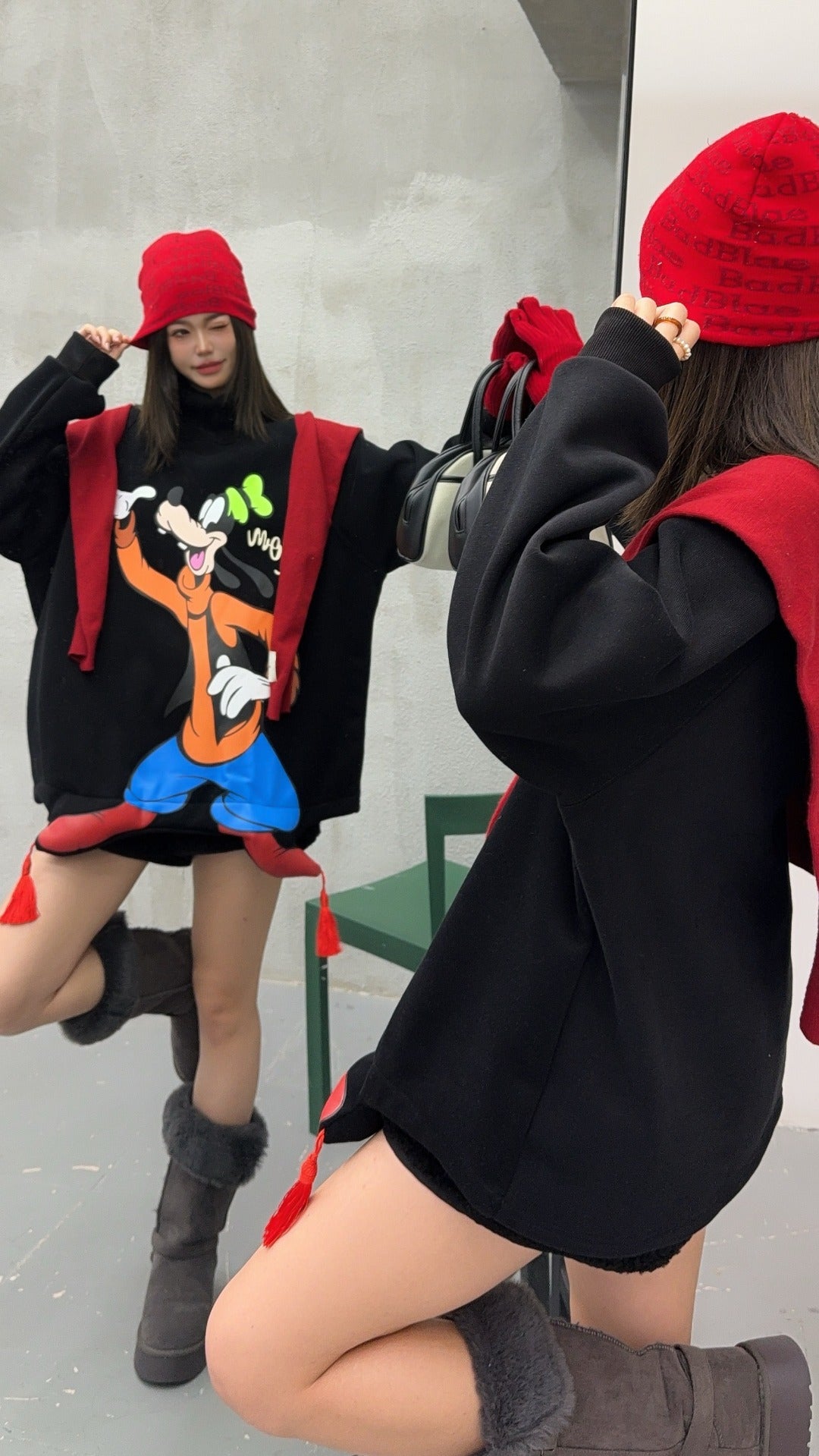 🄶🅁🄾🅄🄽🄳♾🅉🄴🅁🄾25-26SS♾無性別穿搭OverSize美式新款復古立體狗狗中高領長袖大學T-SHIRT(加厚加絨)🔥