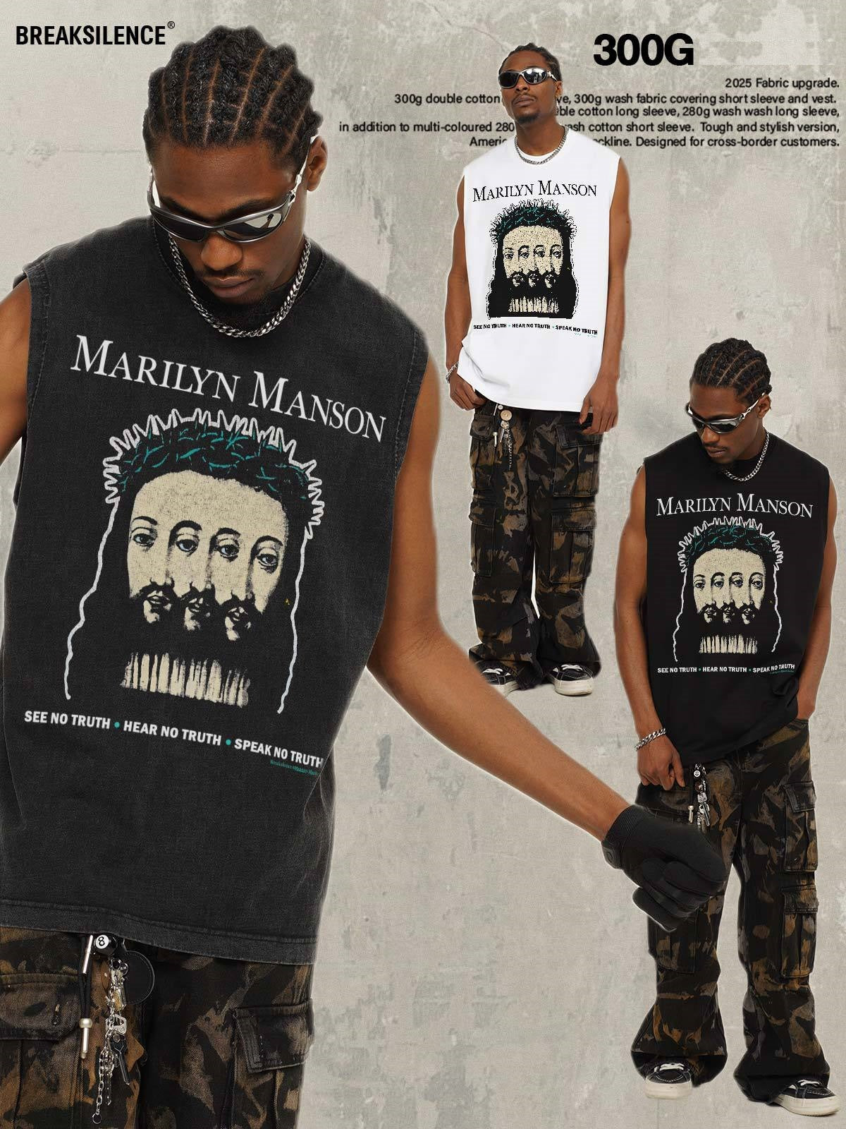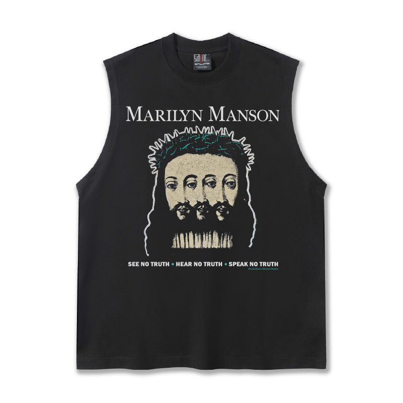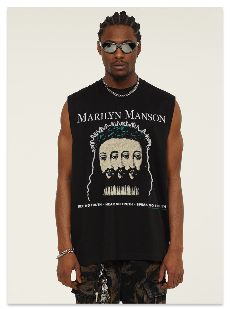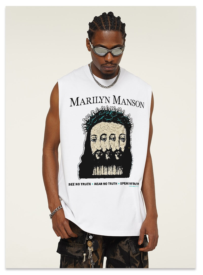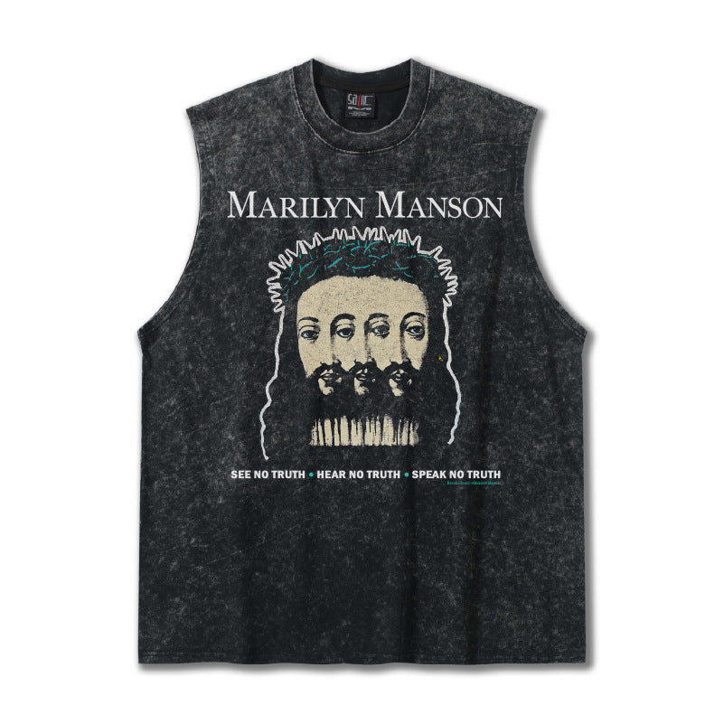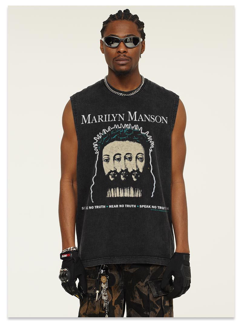 G.Z邁阿密南岸𝔾𝕣𝕠𝕦𝕟𝕕ℤ𝕖𝕣𝕠®✥南裝大佬✥ 美式嘻哈水洗重磅數男女中性瑪莉蓮曼森坎肩背心亞洲版型)