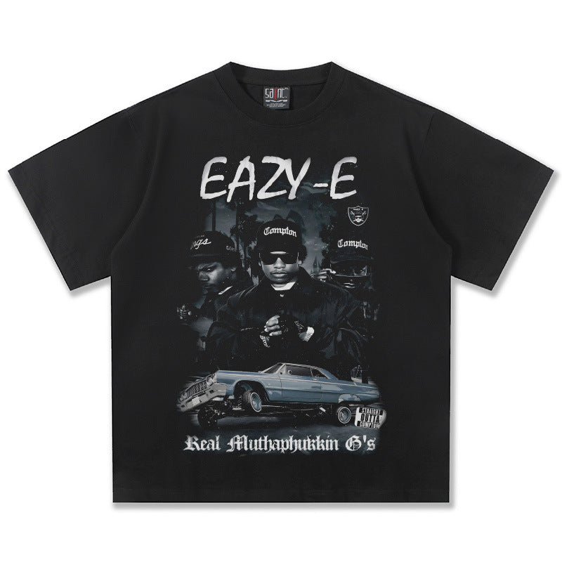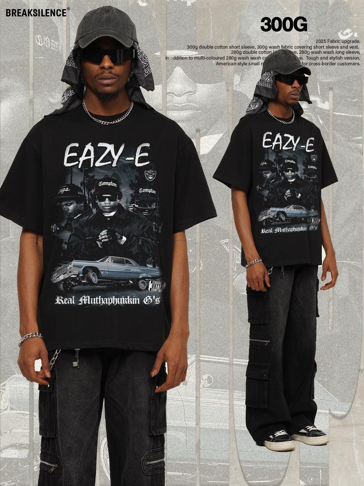 G.Z邁阿密南岸𝔾𝕣𝕠𝕦𝕟𝕕ℤ𝕖𝕣𝕠®✥南裝大佬✥ 美式嘻哈水洗重磅數男女中性Eazy-E短袖上衣T-Shirt(亞洲版型)