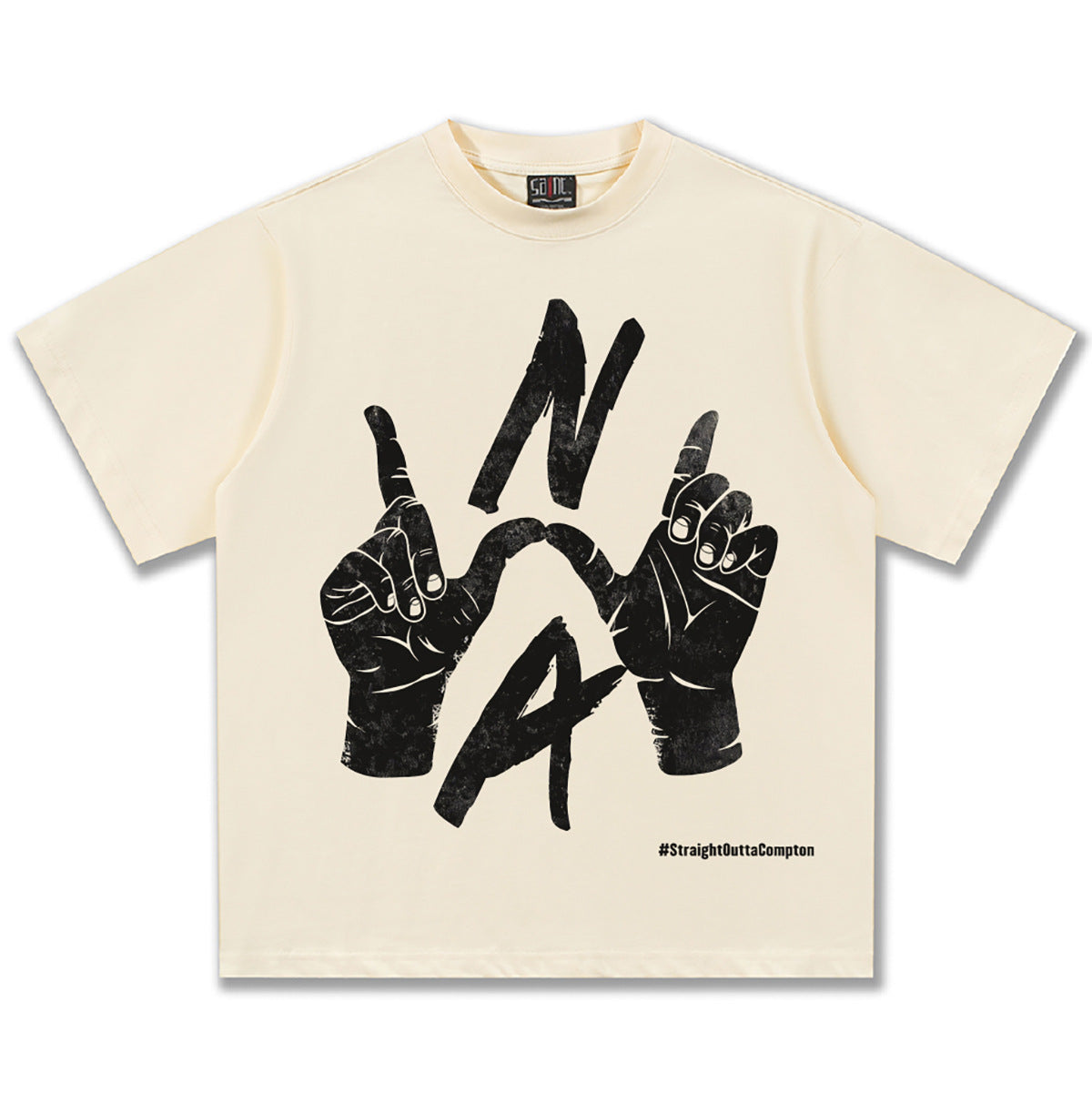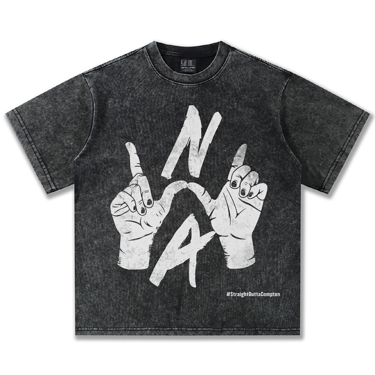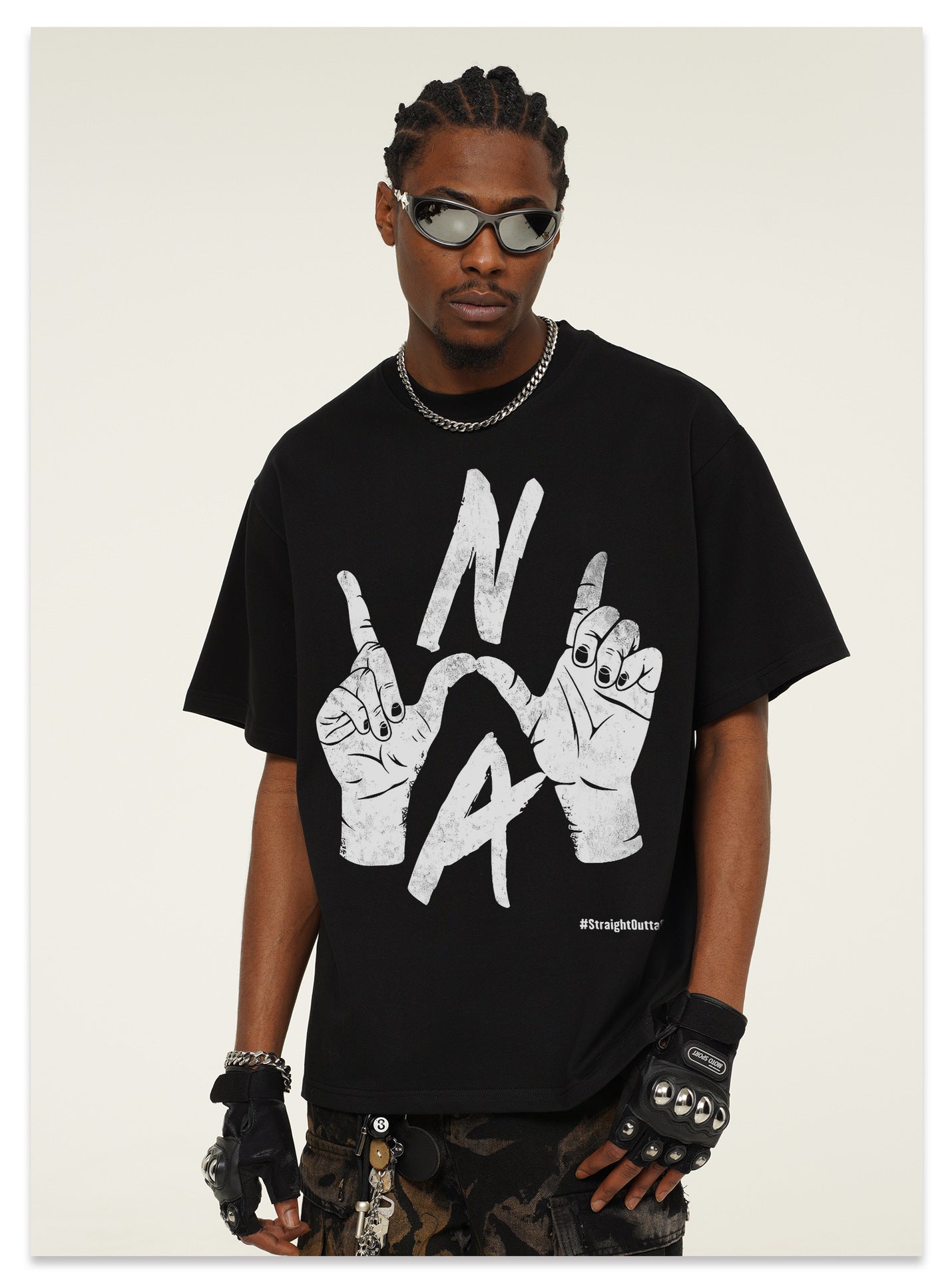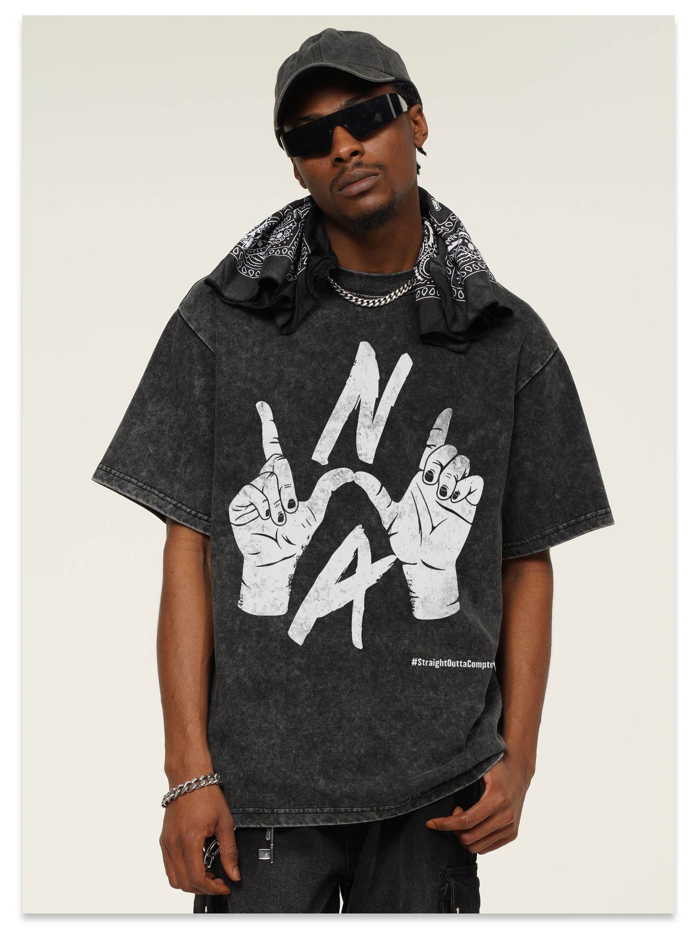 G.Z邁阿密南岸𝔾𝕣𝕠𝕦𝕟𝕕ℤ𝕖𝕣𝕠®✥南裝大佬✥ 美式嘻哈水洗重磅數男女中性N.W.A手勢短袖上衣T-Shirt(亞洲版型)