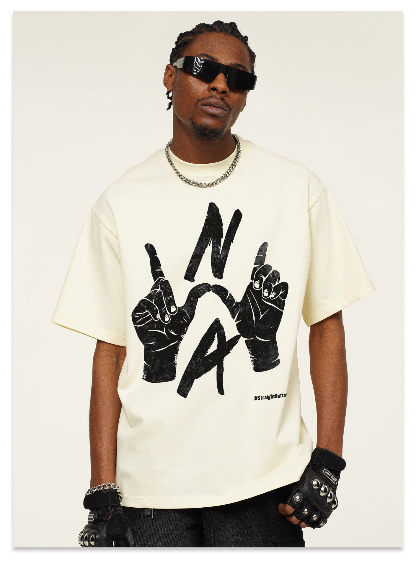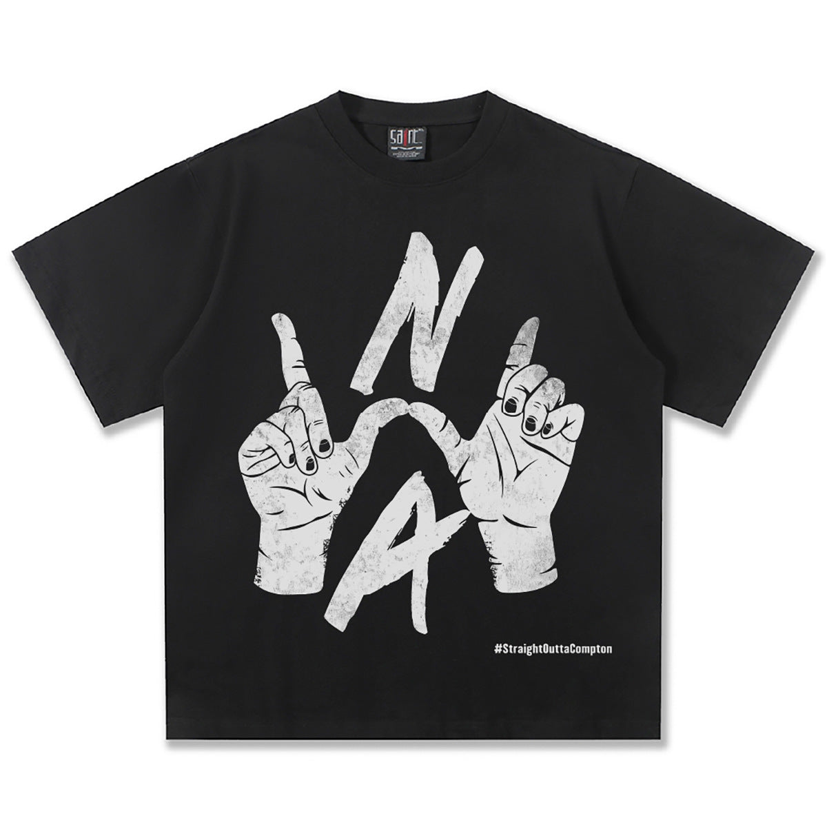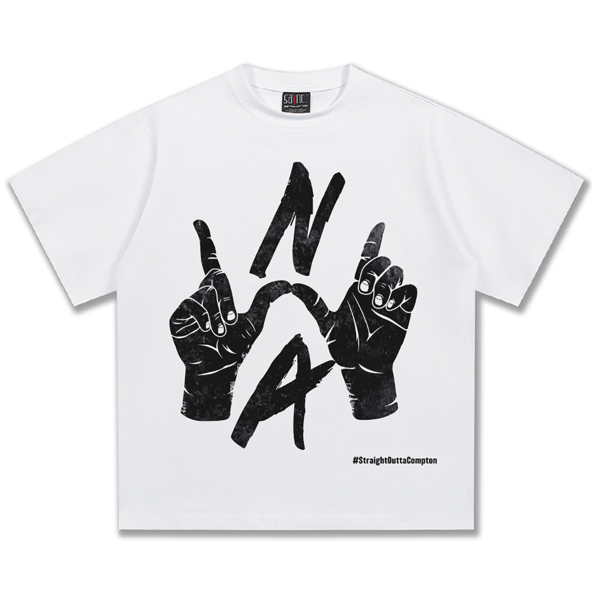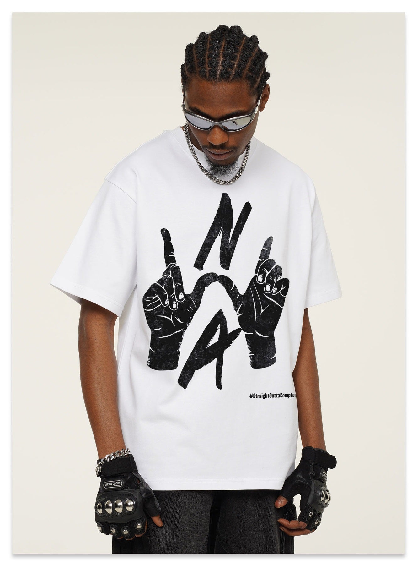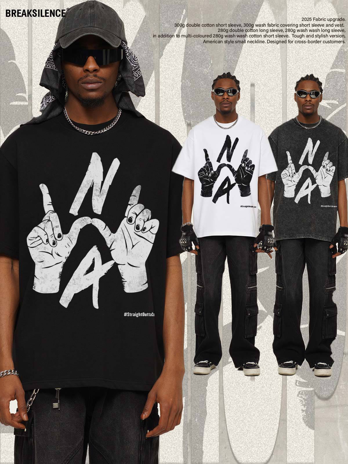 G.Z邁阿密南岸𝔾𝕣𝕠𝕦𝕟𝕕ℤ𝕖𝕣𝕠®✥南裝大佬✥ 美式嘻哈水洗重磅數男女中性N.W.A手勢短袖上衣T-Shirt(亞洲版型)
