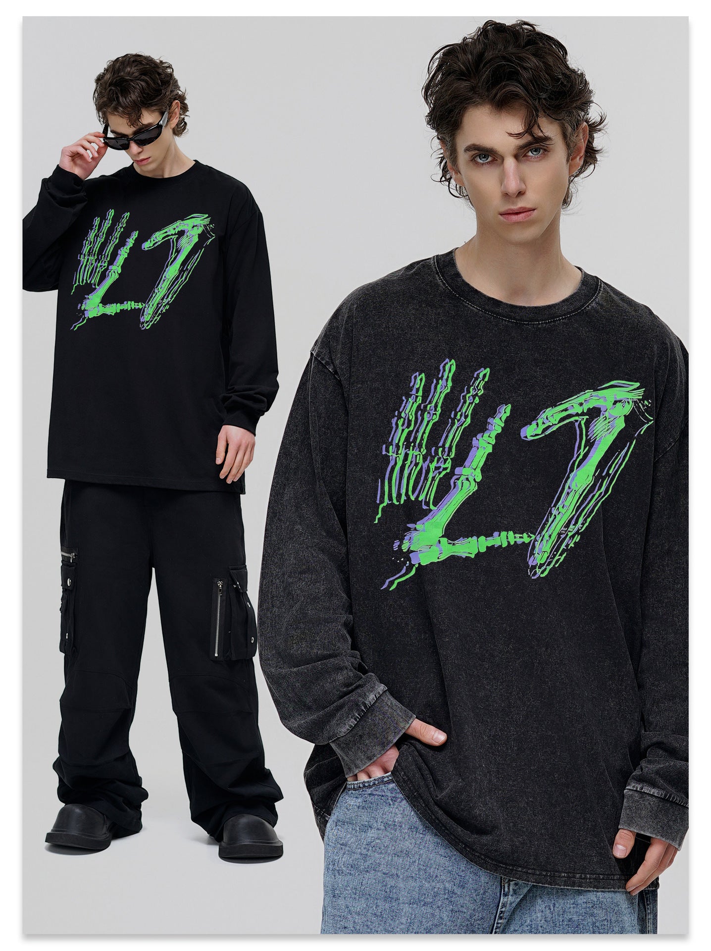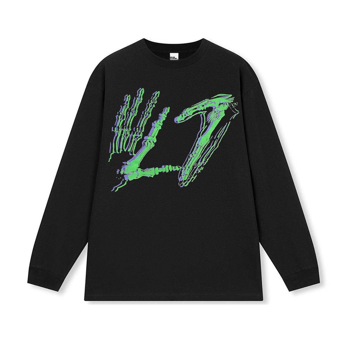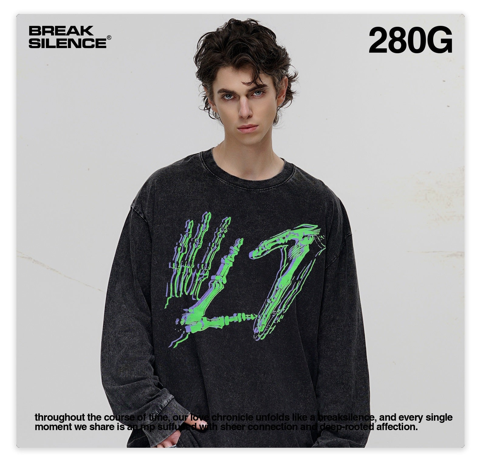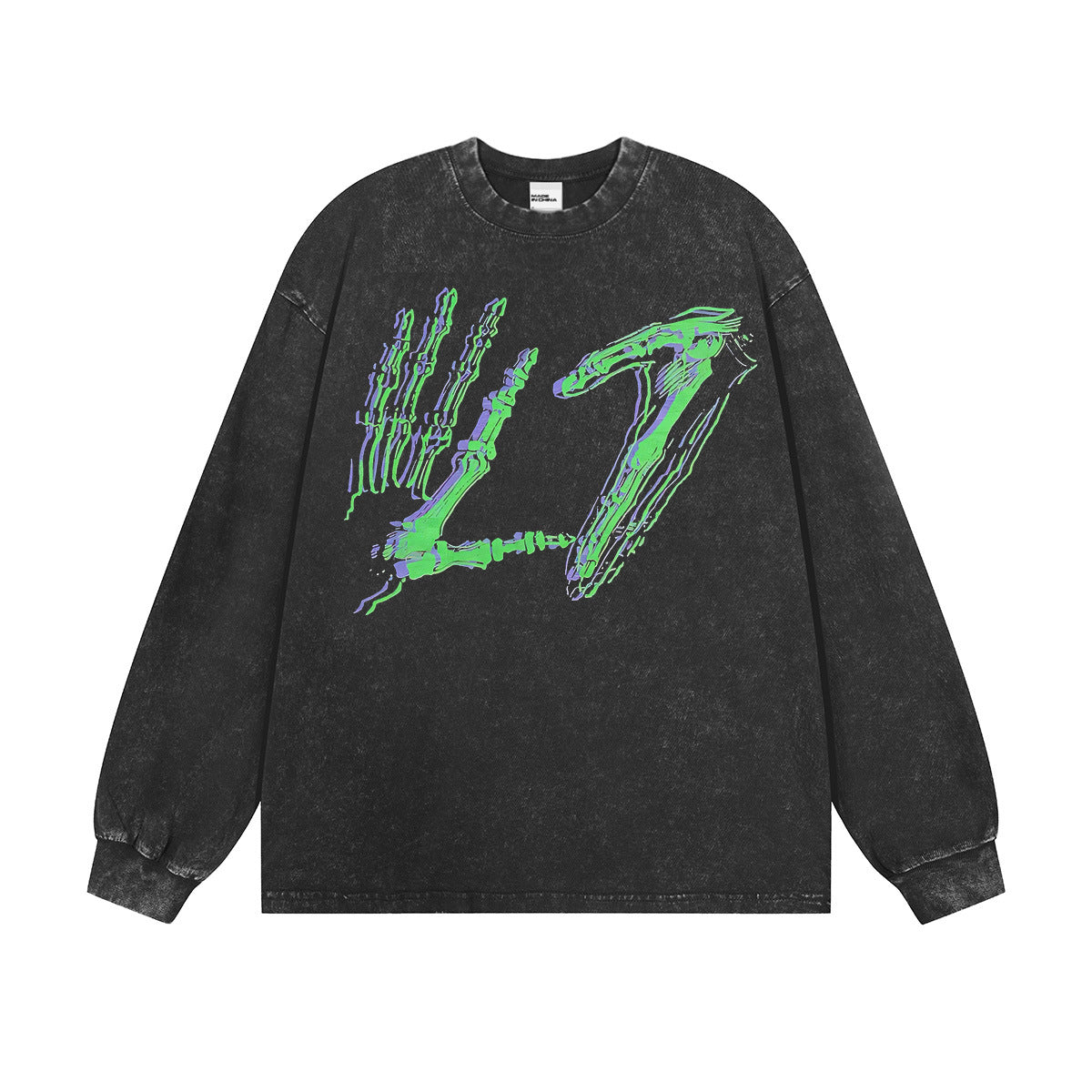G.Z邁阿密南岸𝔾𝕣𝕠𝕦𝕟𝕕ℤ𝕖𝕣𝕠®✥南裝大佬✥ 美式嘻哈水280g骷髏手勢長袖上衣T-Shirt
