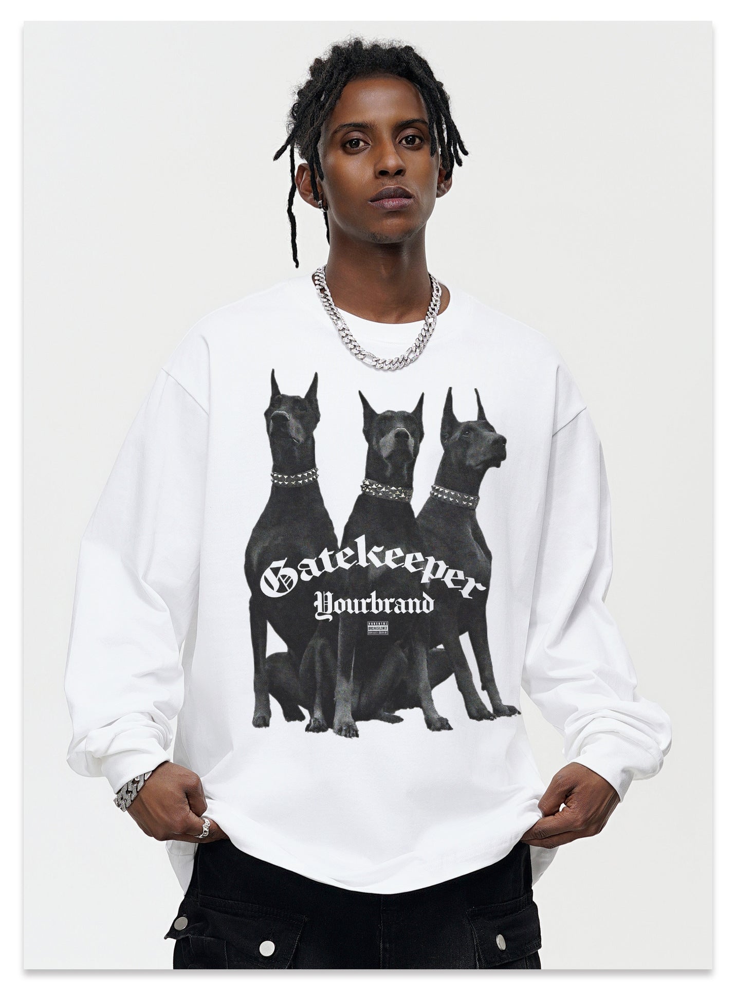 G.Z邁阿密南岸𝔾𝕣𝕠𝕦𝕟𝕕ℤ𝕖𝕣𝕠®✥南裝大佬✥ 美式嘻哈水280g杜賓犬長袖上衣T-Shirt